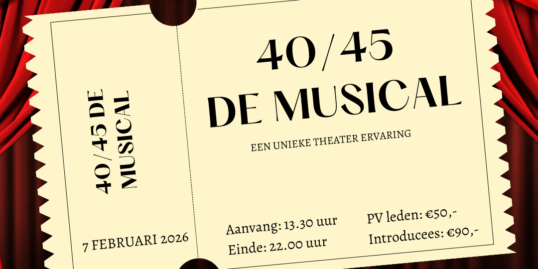 Op 7 februari 2026 organiseert de personeelsvereniging een onvergetelijke middag en avond voor alle PV-leden en introducees. We gaan naar de spectaculaire musical 40/45 in Barneveld!
